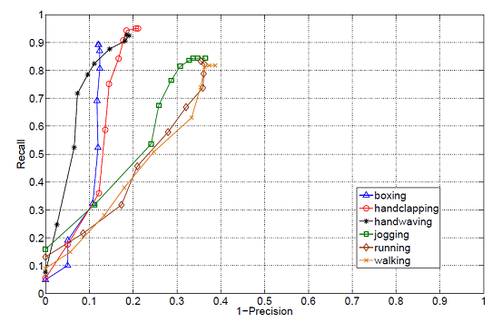 Joint Localization and recognition: ROC curves corresponding to each class of the KTH dataset.