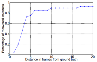 As can be seen, the proposed algorithm was able to localize 90% of the extracted hypotheses within 10 frames from the ground truth annotation.