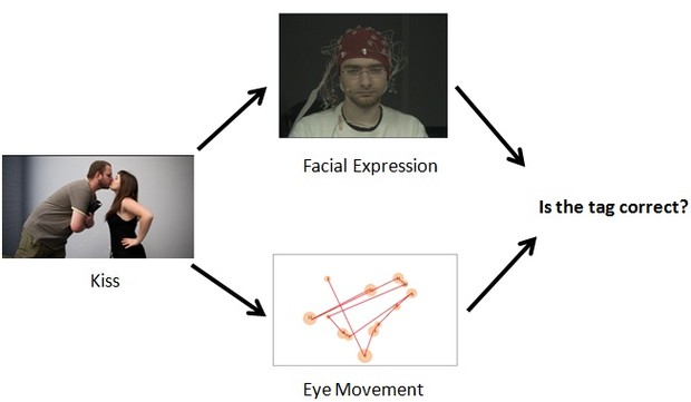 In contrast to explicit tagging, implicit tagging is the technique to annotate multimedia data based on user's nonverbal reactions, such as facial expression and head gesture. The data is tagged in a implicit way because it is based on user's reaction without explicitly requesting a user to associate tag with the data. One possible application of implicit tagging is to assess the correctness of explicit tags. For example, if a user smiles or nodes the head while watching a tagged datum, this may imply that the tag is correct; however, if the user displays an expression of surprise or disappointment, the tag is likely to be incorrect. Another possible application of implicit tagging is to assign new explicit tags. For instance, if the user laughs while watching an untagged datum, it is likely that it contains some funny elements, thus can be labelled as "funny" or "interesting". Our current research focuses on using user's facial expressino and eye movement to predict the correctness of tags.