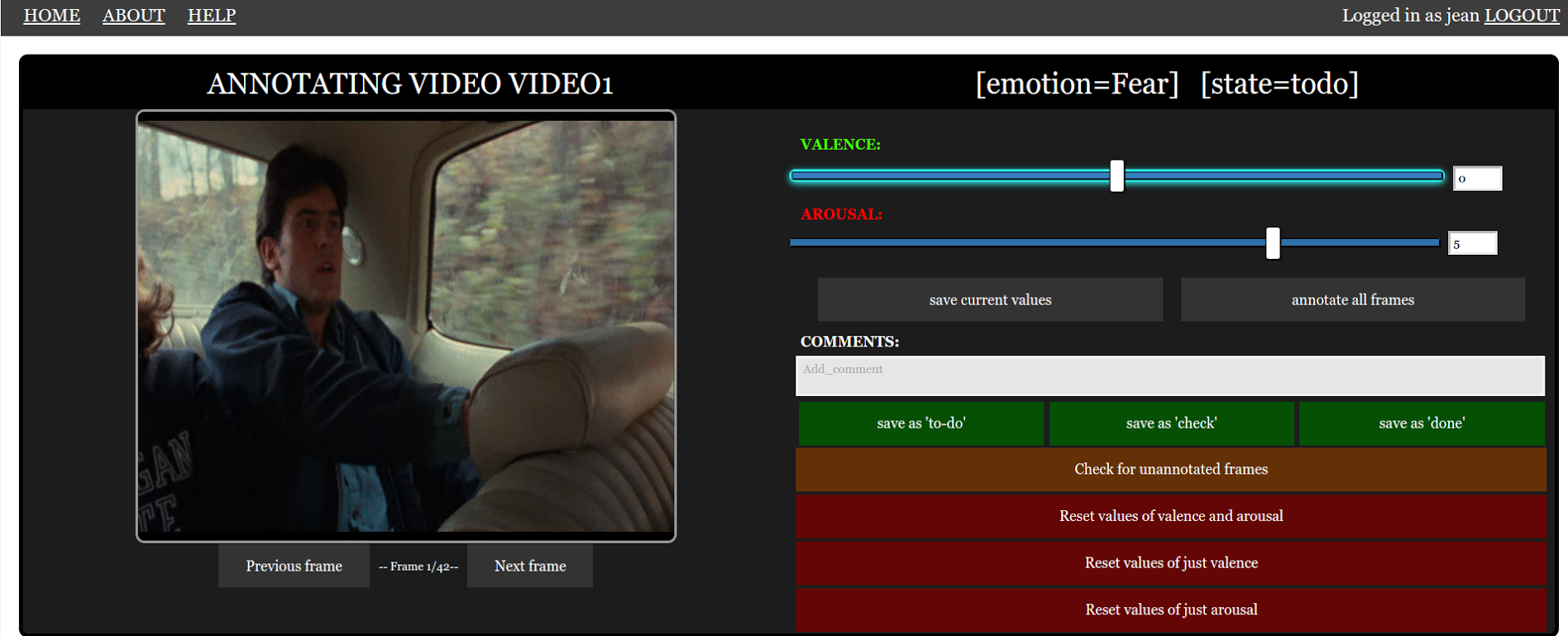 This tool, written in Python as a Flask application backed with a MongoDB, allows any number people to annotate video clips per-frame, for valence and arousal, remotely. In addition it can be easily extended to handle more annotations (e.g. discrete emotions).